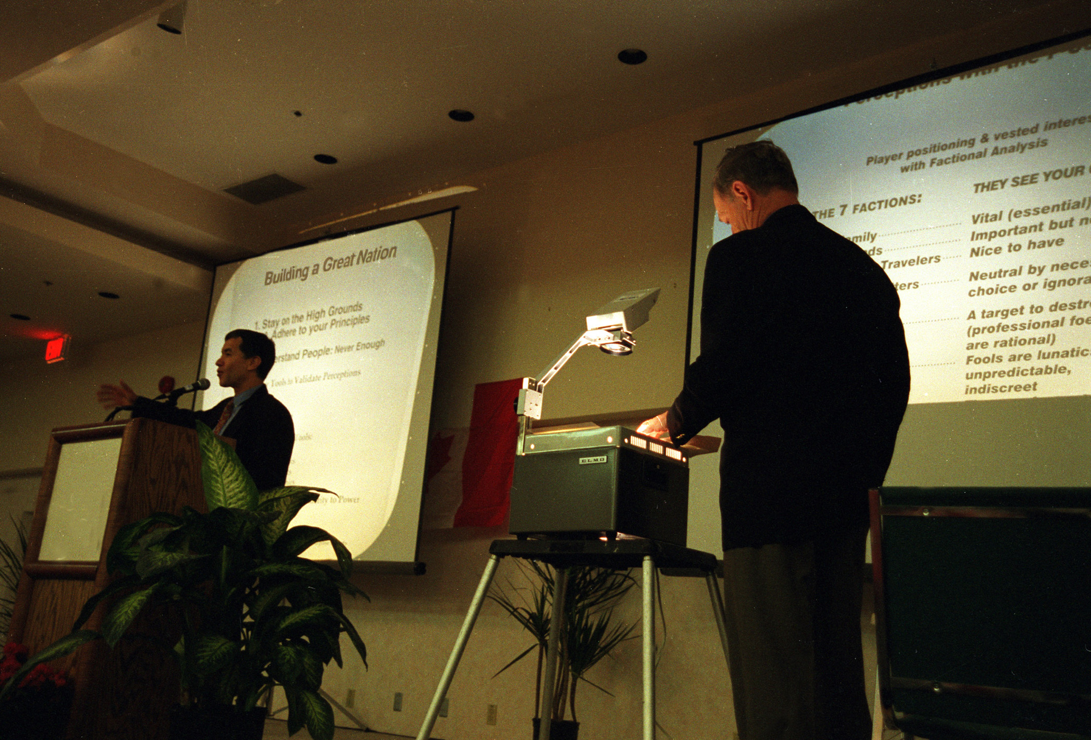 With the help of Prime Minister Jean Chrétien (right), Alain Paul Martin (left) is delivering a session of the public-service version of his World Seminar on governance titled “Building a Great Nation”, at the invitation of the Canadian Government's Members of Parliament. Photo: Jean-Marc Carisse |